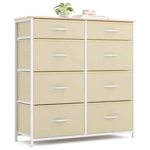 Die Xbro Kommode ist ein vielseitiges Möbelstück, das in jedem Zuhause eine praktische und stilvolle Ergänzung darstellt. Mit insgesamt 8 Schubladen aus Stoff bietet sie ausreichend Stauraum für Kleidung, Accessoires, Bücher oder andere Gegenstände, die ordentlich verstaut werden sollen. Durch die Holzplatte auf der Oberseite der Kommode kann sie auch als Ablagefläche genutzt werden, um Dekorationsgegenstände, Lampen oder Fotos zu platzieren.