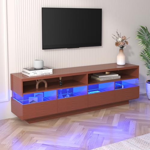 Der YESGIGA Schrank ist ein hochwertiger TV-Schrank aus Holz, der nicht nur funktional ist, sondern auch stilvoll und modern aussieht. Dieser Schrank verfügt über ein niedriges Panel mit LED-Beleuchtung, das nicht nur für eine angenehme Atmosphäre im Raum sorgt, sondern auch als dekoratives Element dient. Mit zwei Fächern und vier großen Schubladen bietet dieser Schrank viel Stauraum für Ihre elektronischen Geräte, DVDs, Bücher und andere Gegenstände.