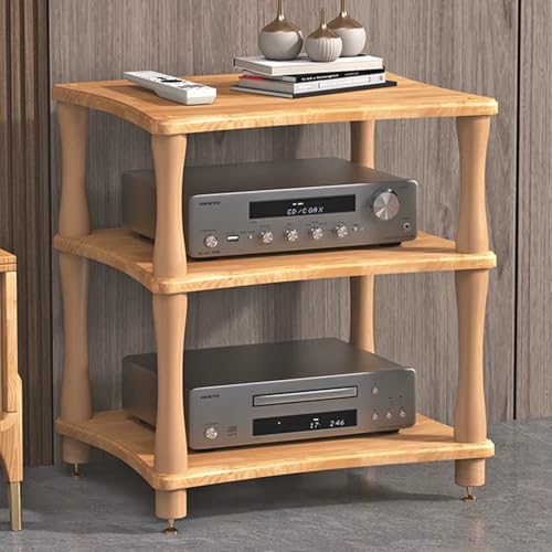 Das Holz-Audio-Rack ist in einer natürlichen Holzfarbe gehalten, die zu jeder Einrichtung passt und eine warme und gemütliche Atmosphäre in Ihrem Wohnzimmer schafft. Das zeitlose Design des Regals sorgt dafür, dass es nicht nur funktional ist, sondern auch ästhetisch ansprechend aussieht.