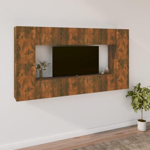 Das YUHI-HQYD 8-TLG. TV-Schrank-Set ist ein vielseitiges und stilvolles Möbelstück, das sowohl funktionale als auch ästhetische Bedürfnisse erfüllt. Dieses Set besteht aus verschiedenen Elementen, darunter Hängeschränke, TV-Wand, Medienschränke, Aufbewahrungsschränke, TV-Möbel, Wanddekoration und Korridorkabinett, die alle aus hochwertigem Räuchereiche-Holzwerkstoff gefertigt sind. Diese Möbel sind perfekt für Wohnzimmer, Arbeitszimmer oder jeden anderen Raum, in dem Sie eine moderne und elegante Atmosphäre schaffen möchten.