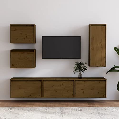 Die YUHI-HQYD TV-Schränke sind eine stilvolle und praktische Ergänzung für jedes Wohnzimmer oder Büro. Mit insgesamt 6 Stück Hängeschränken, flachen Kabinetten, Aufbewahrungsschränken und Konsolenschränken bieten sie ausreichend Stauraum für Ihre elektronischen Geräte, DVDs, Bücher und andere Wohnaccessoires. Der moderne Stil und die Honigbraune Massivholz Kiefer verleihen jedem Raum eine warme und gemütliche Atmosphäre.