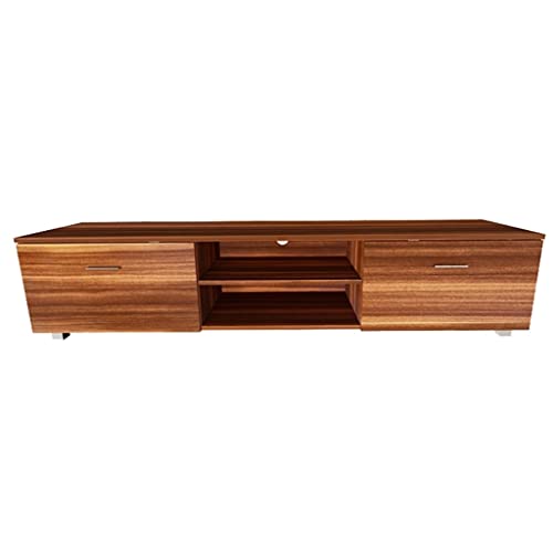 Die YYYMLL Medienkonsole verfügt über mehrere Fächer und Ablageflächen, die ausreichend Platz für TV-Geräte, Spielkonsolen, DVDs, Bücher und andere Gegenstände bieten. Ein offenes Regal bietet zusätzlichen Stauraum für Dekorationsgegenstände oder persönliche Accessoires. Der Schrank unterhalb der Konsole bietet Platz für weitere elektronische Geräte oder Medien.