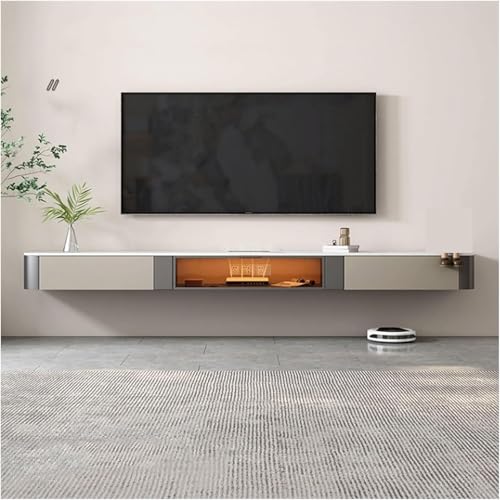 Der ZHENCHAO Schwebende LED-TV-Ständer mit Verriegelungsplatte ist ein modernes, wandmontiertes Entertainment-Center, das für Fernseher mit einer Größe von 78,7 Zoll, 86,6 Zoll oder 94,4 Zoll geeignet ist. Mit seinem ultradünnen Design und seinem integrierten Regal und TV-Schrank ist dieser TV-Ständer nicht nur funktional, sondern auch ästhetisch ansprechend.