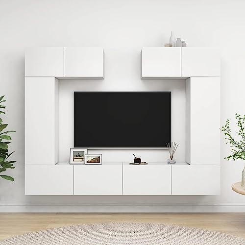 Das TV-Schrank-Set besteht aus sechs Teilen, die alle aus hochwertigem Holzwerkstoff gefertigt sind. Dies garantiert nicht nur eine hohe Stabilität und Langlebigkeit, sondern verleiht den Möbeln auch eine edle Optik. Der weiße Farbton bringt zudem eine gewisse Leichtigkeit in den Raum und sorgt für eine angenehme Atmosphäre.