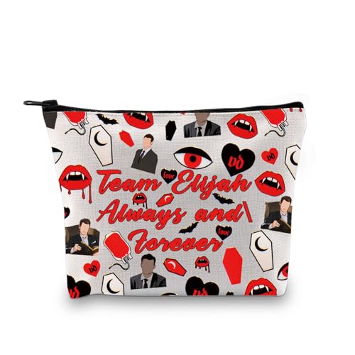 Eine Make-up-Tasche, die von der Show inspiriert ist, ist die Zuo Bao Vampir-TV-Show-inspirierte Make-up-Tasche Team Klaus Elijah Rebekah Always and Forever Kosmetiktasche. Diese Make-up-Tasche ist perfekt für Fans der Show, die ihre Liebe für Team Klaus, Elijah und Rebekah zum Ausdruck bringen möchten. Die Tasche ist mit dem Slogan „Always and Forever“ verziert, der ein zentrales Thema der Show ist, und zeigt die Verbundenheit der Charaktere zueinander.